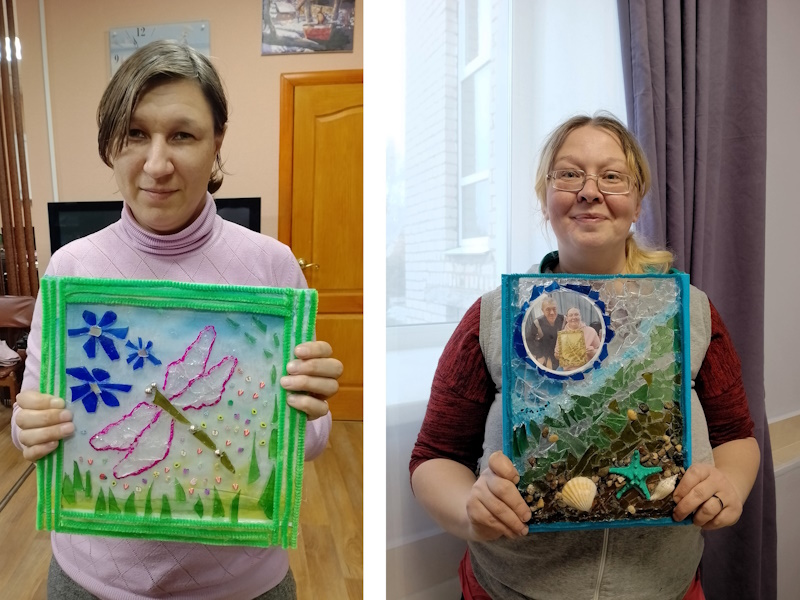 Техника работы с битым стеклом требует особого внимания и аккуратности. В первую очередь, мы научились правильно обрабатывать материал, безопасно работать с мелкими деталями, используя, где необходимо, средства защиты. Готовые стеклышки совсем не колючие .