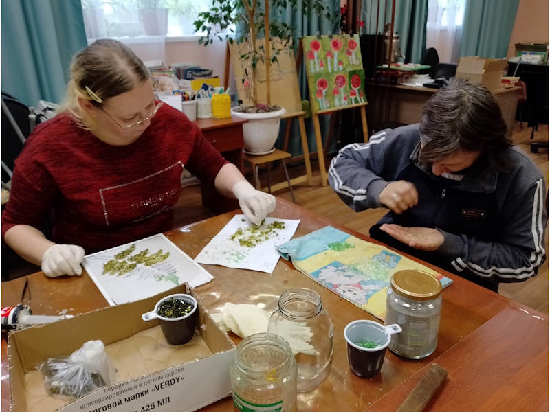 Ребята с большим интересом подходят к созданию композиций, обсуждают гармоничные цветовые сочетания. Каждый элемент мозаики тщательно подбирают по цвету и форме, добавляют камушки, блестки, и другие детали.