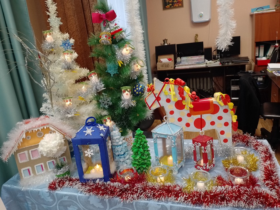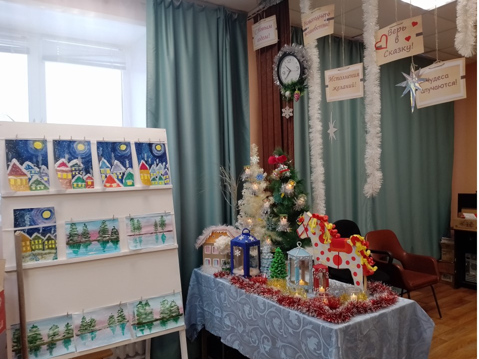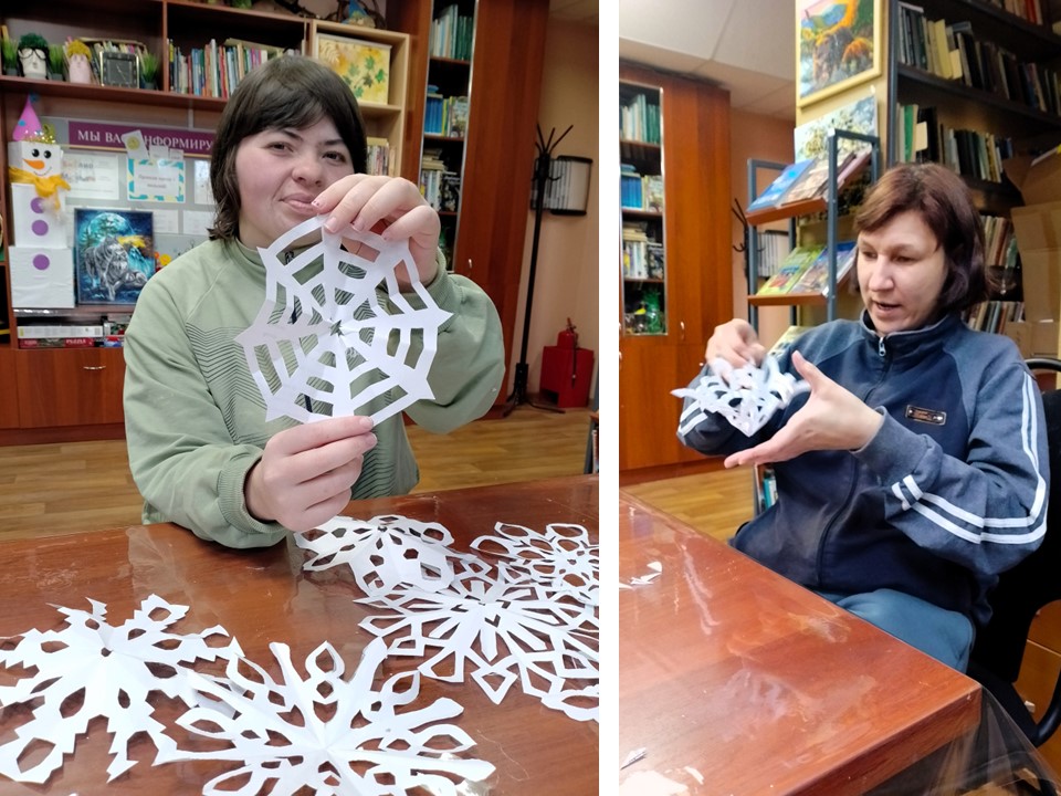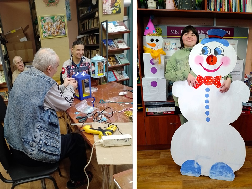 Участники кружка «Библиомастерилки» с увлечением украшают библиотеку, наполняя пространство духом праздника.