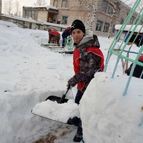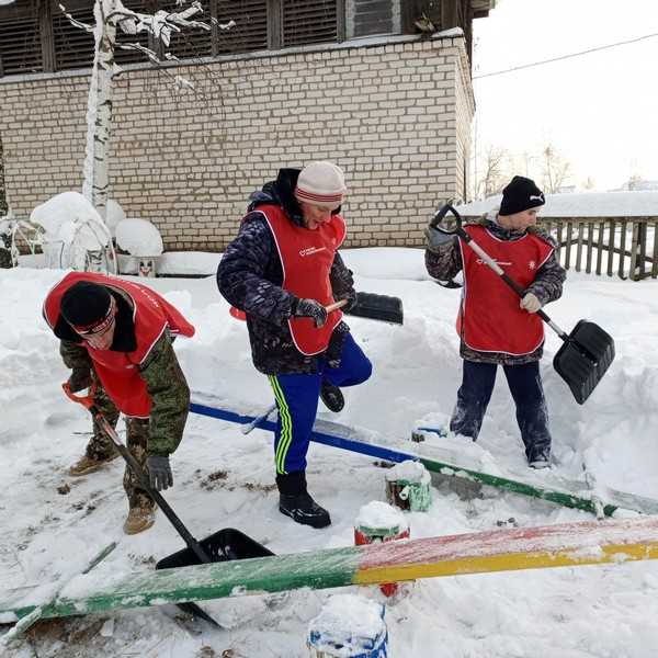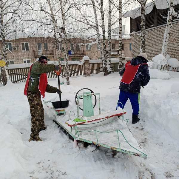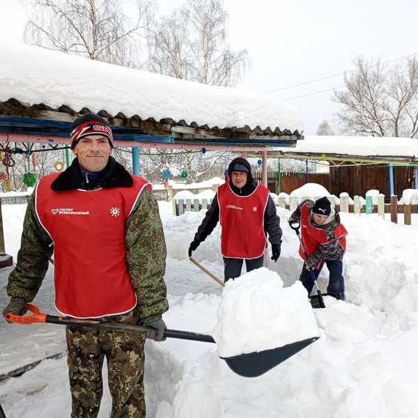 За новогодние каникулы наш посёлок накрыло большим слоем снега. Сотрудники детского сада «Алёнушка» обратились за помощью, и наши неугомонные волонтёры не остались в стороне!